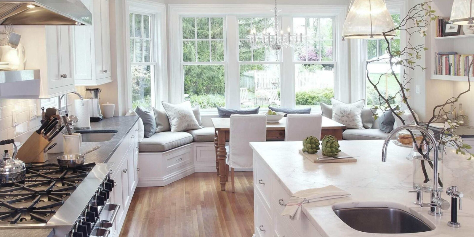 Most commonly, the nearest room to your kitchen is either a living room or a dining room. Since we all know why you would want a sofa in the living room, we’ll skip right past that one and go straight to the dining room.